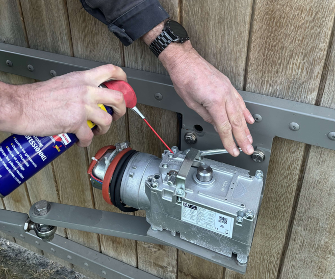 Le grincement et le mouvement saccadé sont les symptômes d’une friction excessive due à un manque de lubrification. Lubrifier les pièces mobiles est essentiel pour garantir la fluidité du mouvement et soulager le moteur de votre portail automatisé, surtout lorsque les températures chutent et que les mécanismes peuvent se gripper.